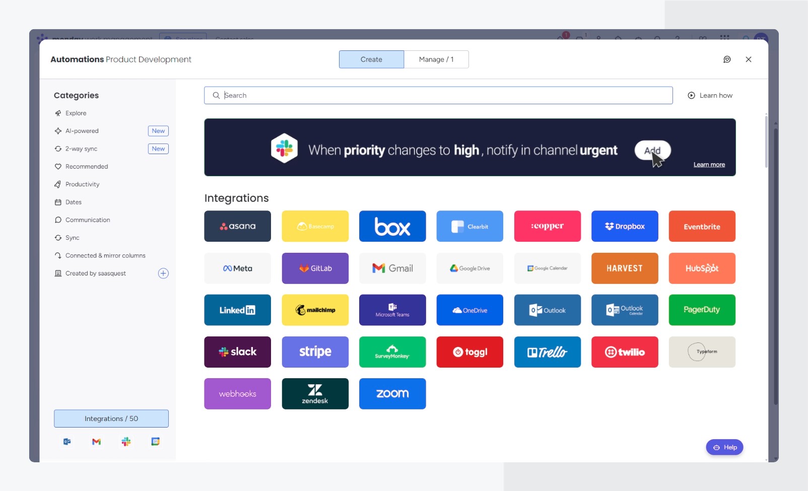 Beyond core work management, monday.com offers other product modules as separate products, such as monday CRM, monday Dev, and monday Service that act as add‑ons tailored to specific domains on the same underlying platform. These modules give you distinct templates, dashboards, and automations for sales, product development, IT service management, and project portfolio management, while still integrating seamlessly with your existing boards. Third‑party apps from consulting and integration partners further extend capabilities around forms, telephony, analytics, and more, so you can plug in specialized functionality as you grow.